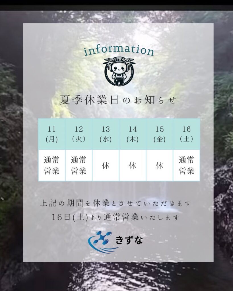上記の通り、8月13日(水)〜15日(金)までの3日間を夏季休業とさせていただきます。