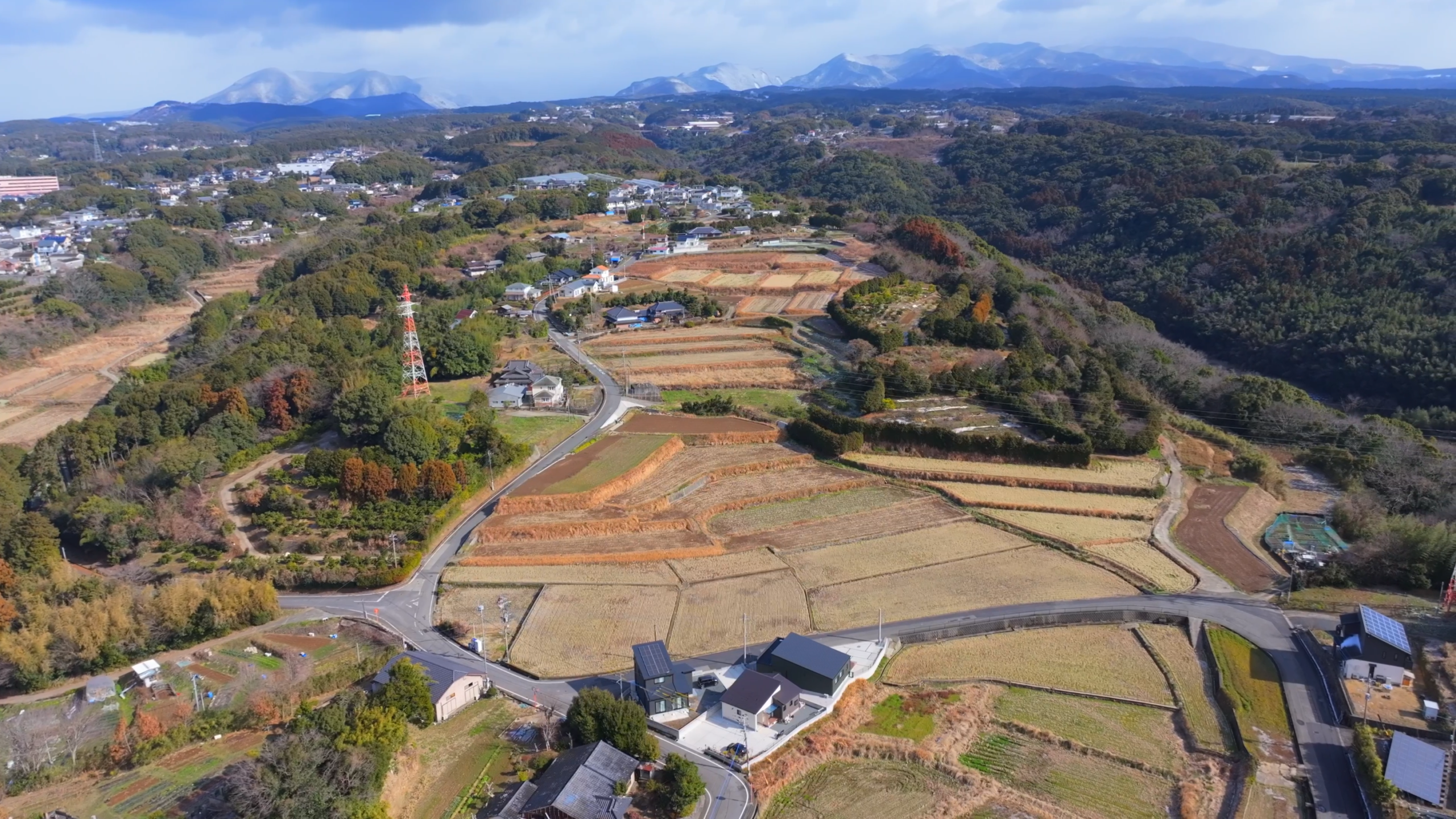 遠くに見える山の稜線と、足元に広がる生活の風景が自然につながる瞬間は、何度見返しても飽きません。