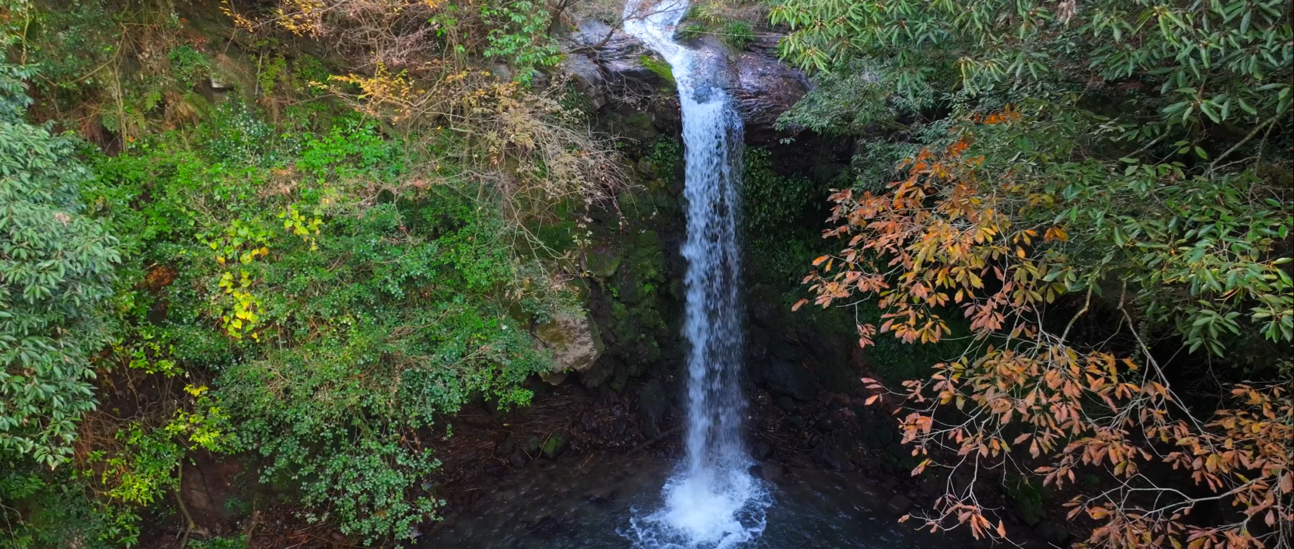 滝の白、岩肌のグレー、周囲の深い緑が重なって、派手ではないけれど、何度も見返したくなる映像になっています。