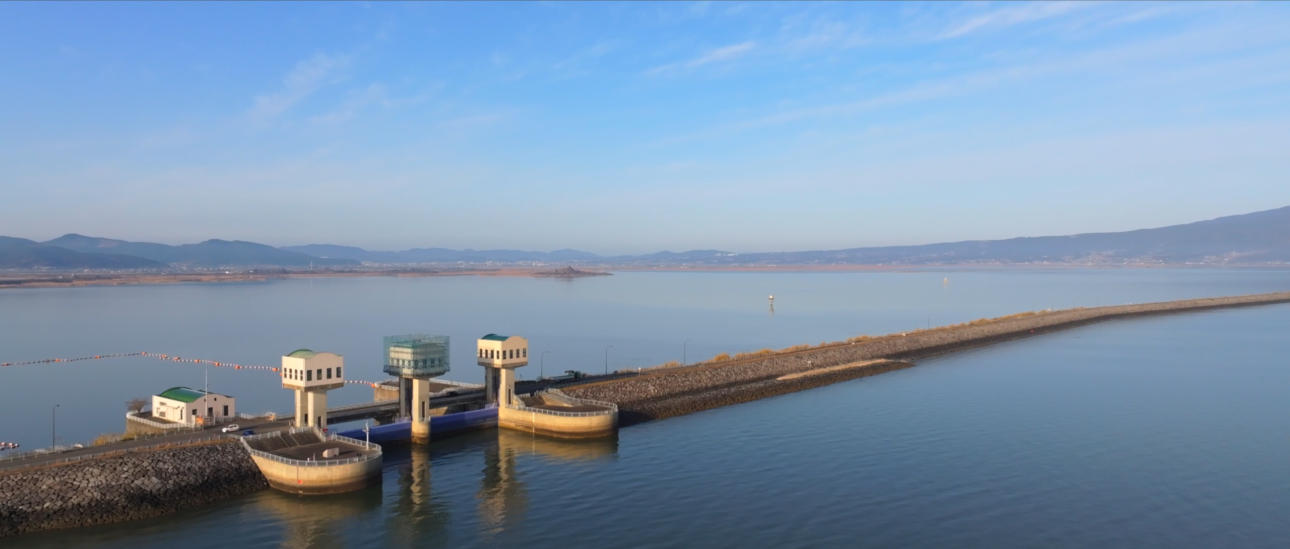 空と海の境界、堤防道路のライン、干拓地の区画。それぞれが重なり合って、大きな風景の一部としてまとまっていきます。